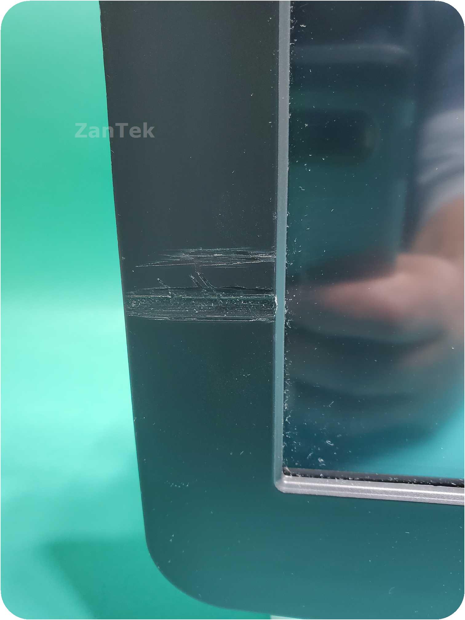 Some scratches on the frame of monitor screen.