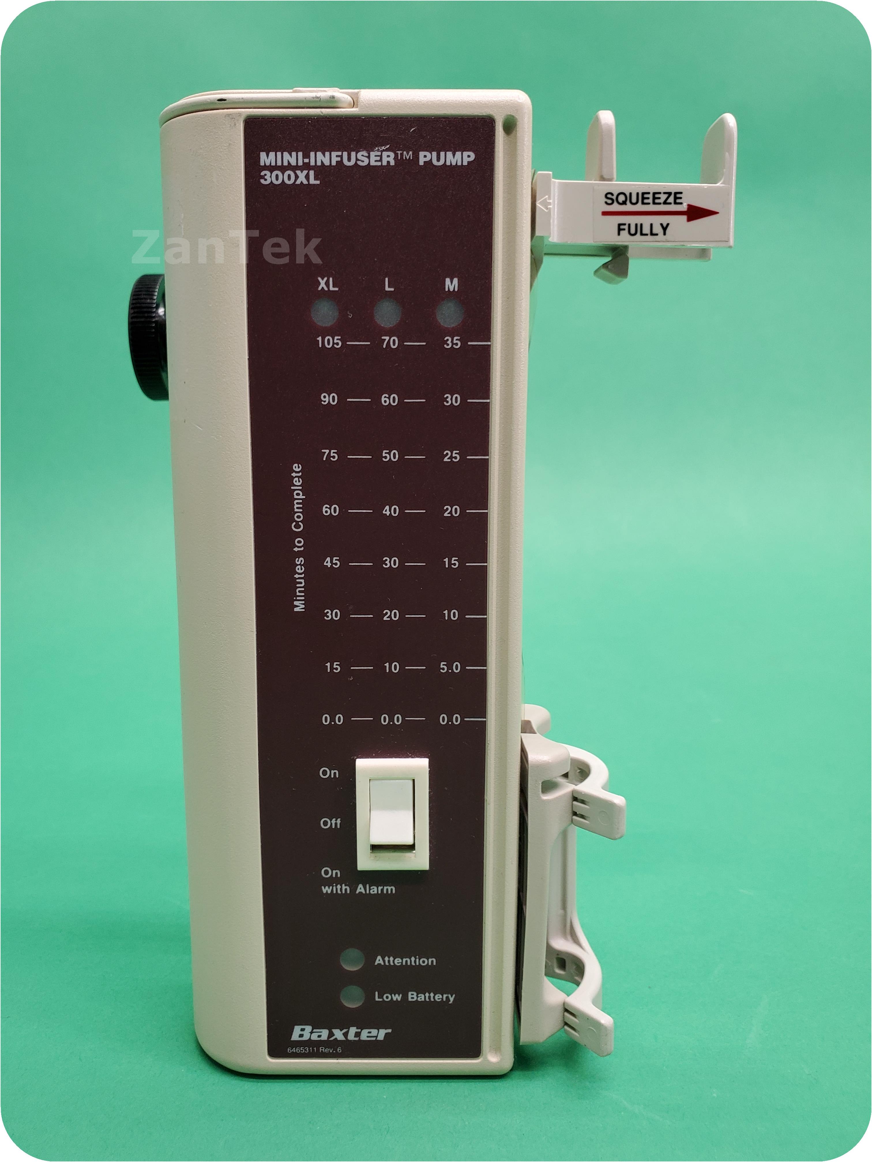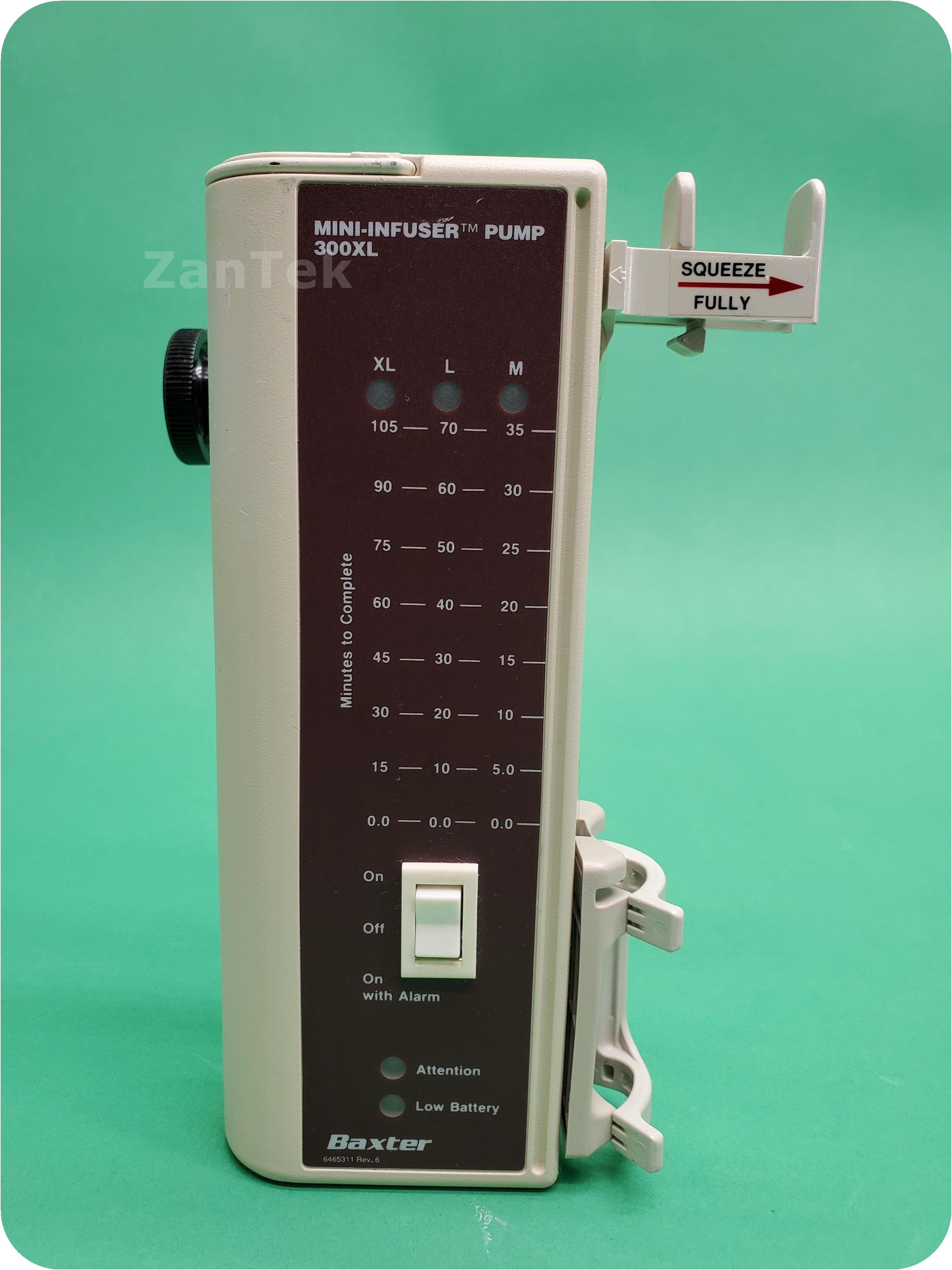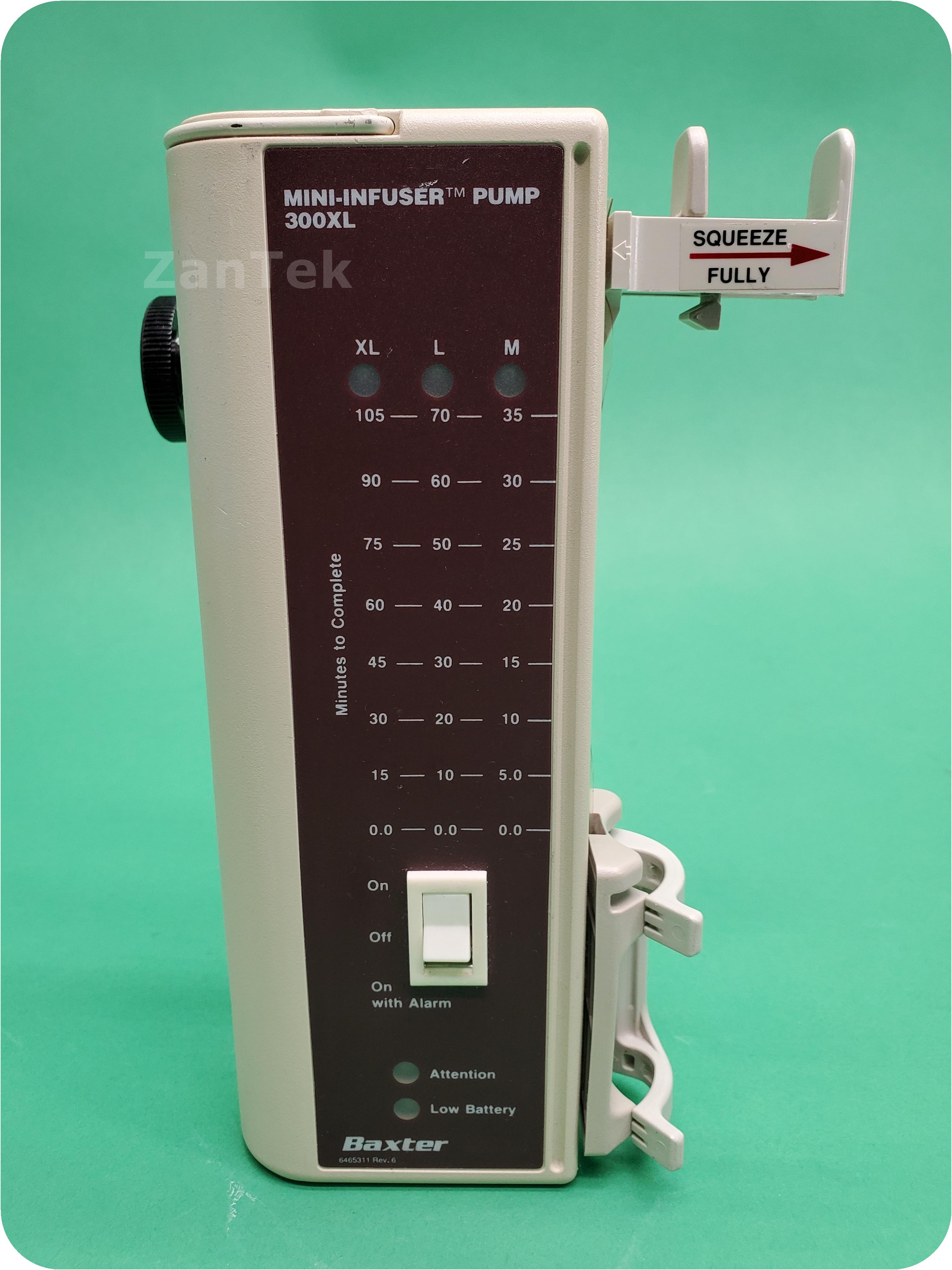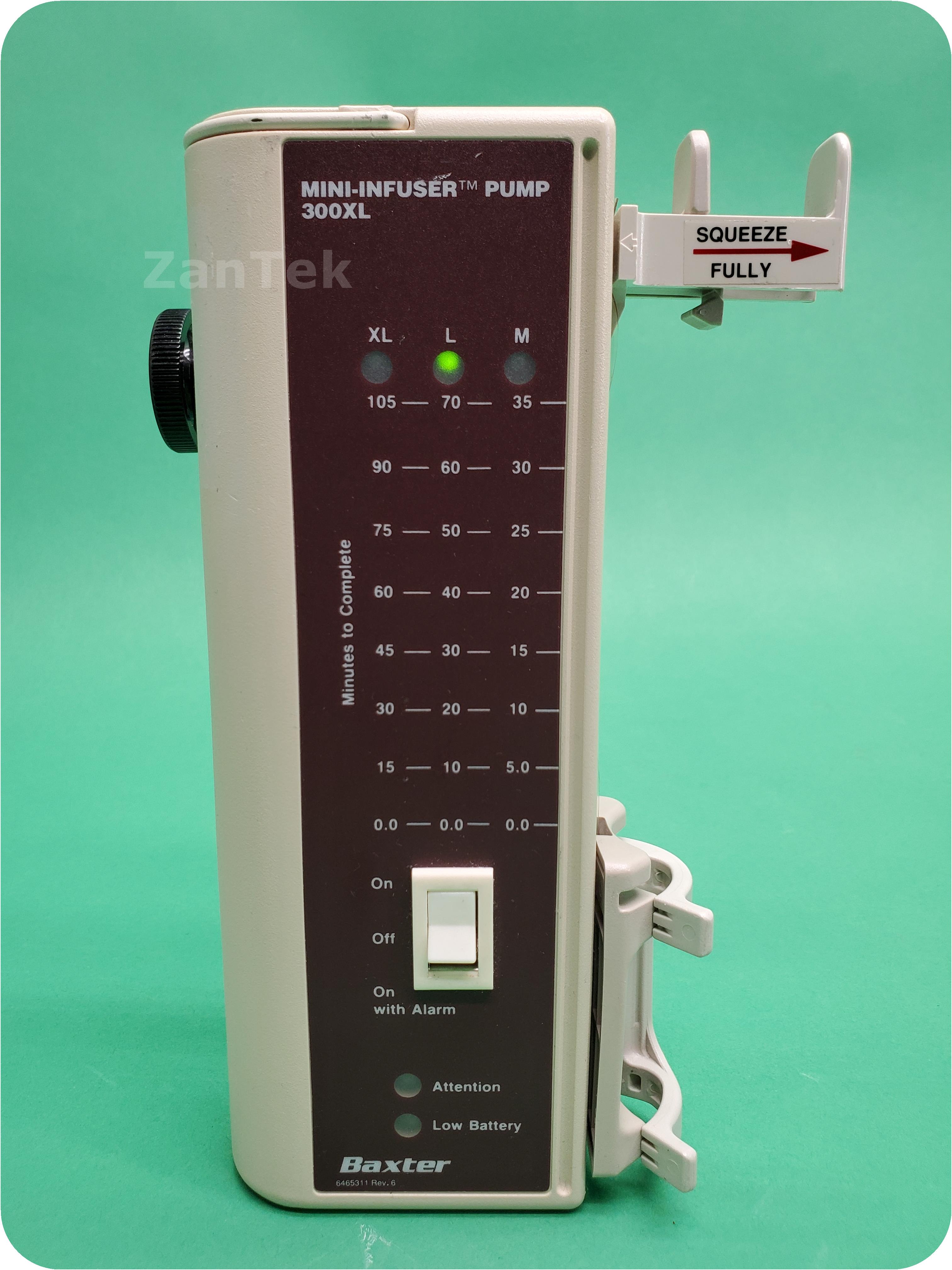 About Baxter 300XL Mini-Infuser: The Mini-InfuserTM System is designed for controlled intermittent administration of intravenous medication. The system includes standard disposable syringes, Microbore extension sets, and the Mini-InfuserTM 300XL syringe pump. This battery operated device provides ultimate control over both drug dosage and rate of administration. The Mini-InfuserTM System provides reproducible, defined drug infusion rates and, when used properly, is safe, dependable and practical.