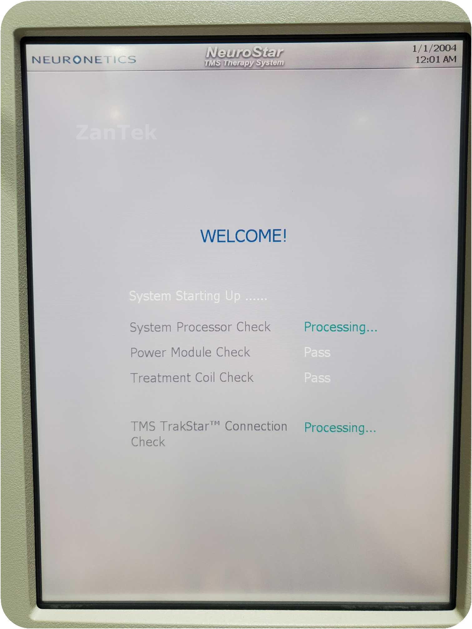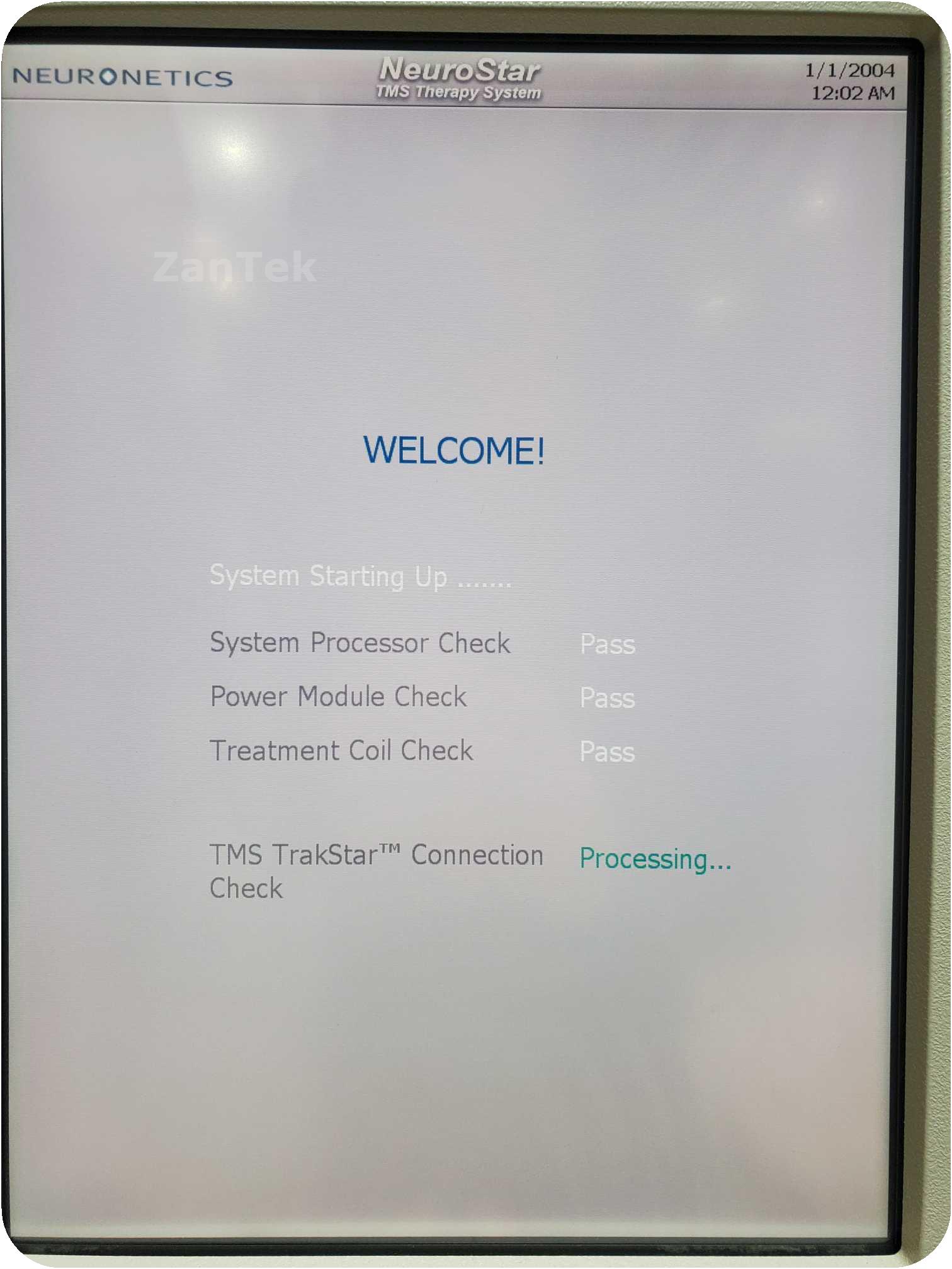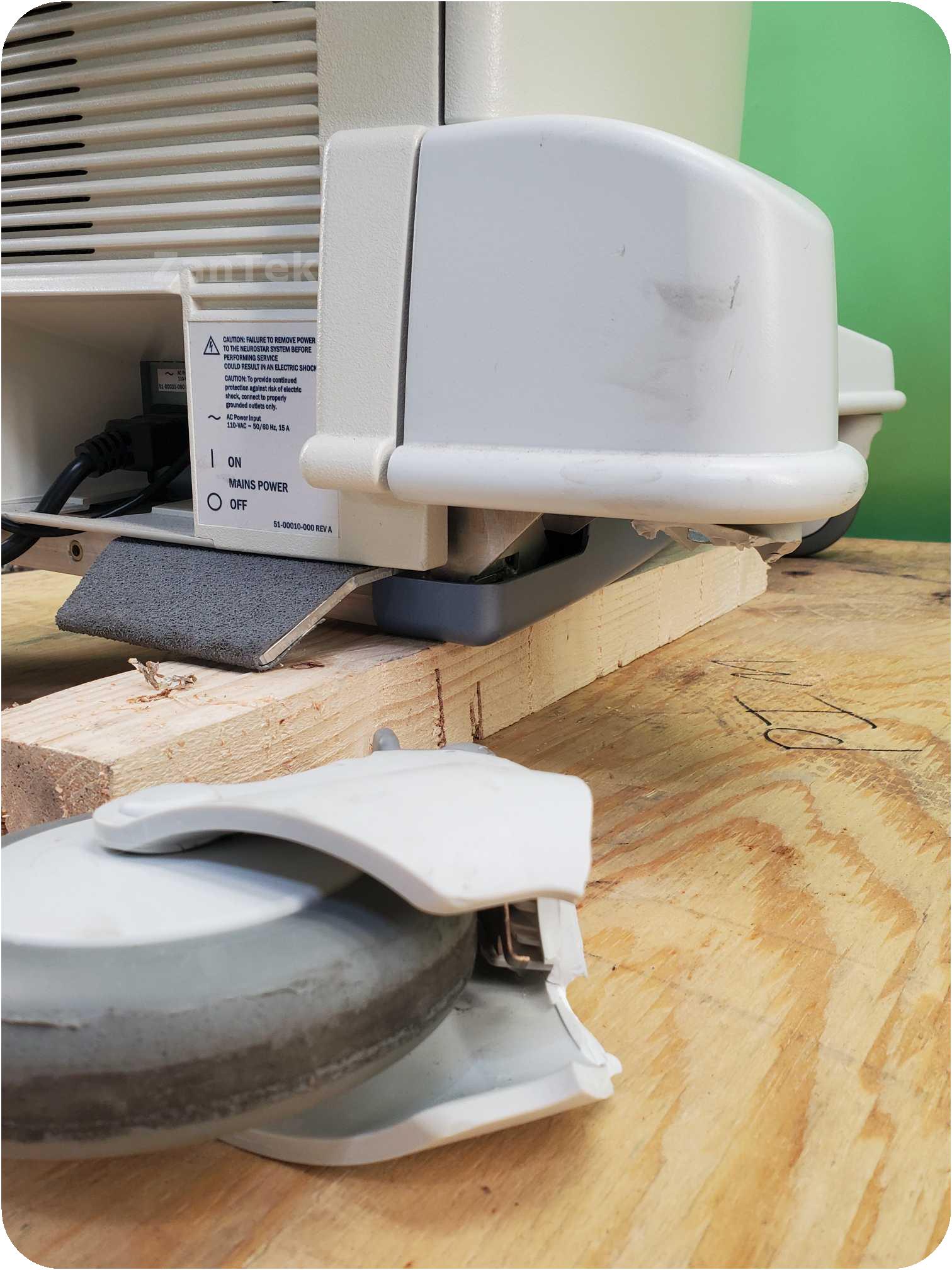 The system has a broken wheel but is in otherwise good condition. Powers on but do not have login info. Includes PC with TrakStar software and patient data management software (do not have the logins for both either).