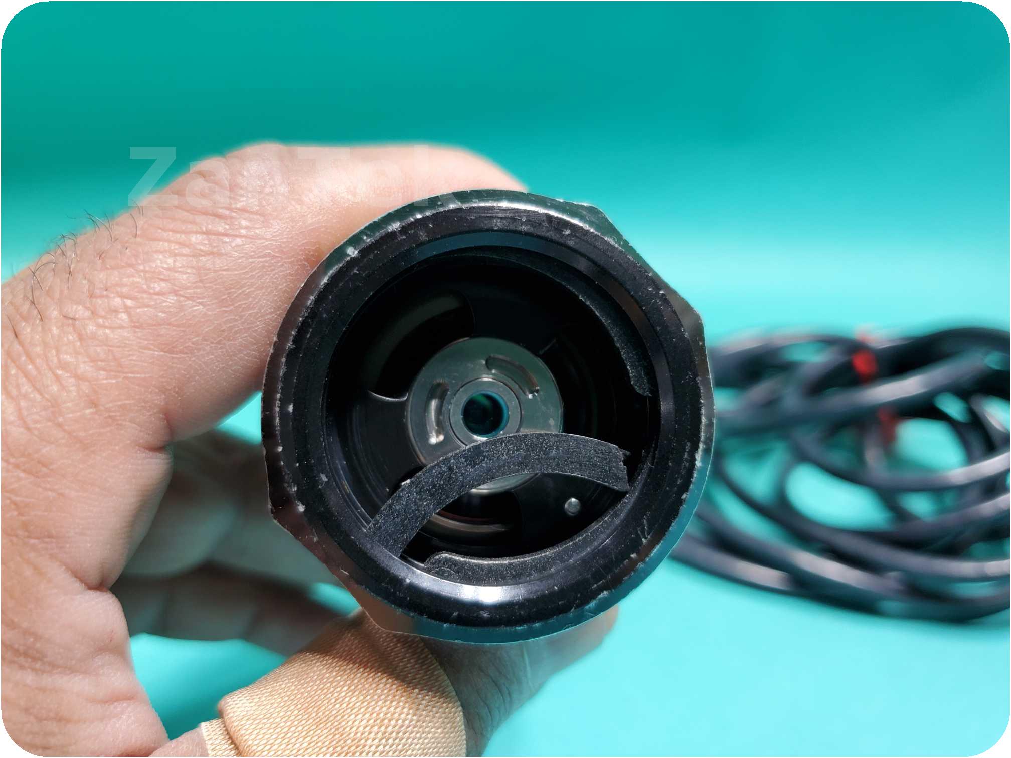 Unit has a crack on the blue colored zoom in out control. It also has broken retention ring.