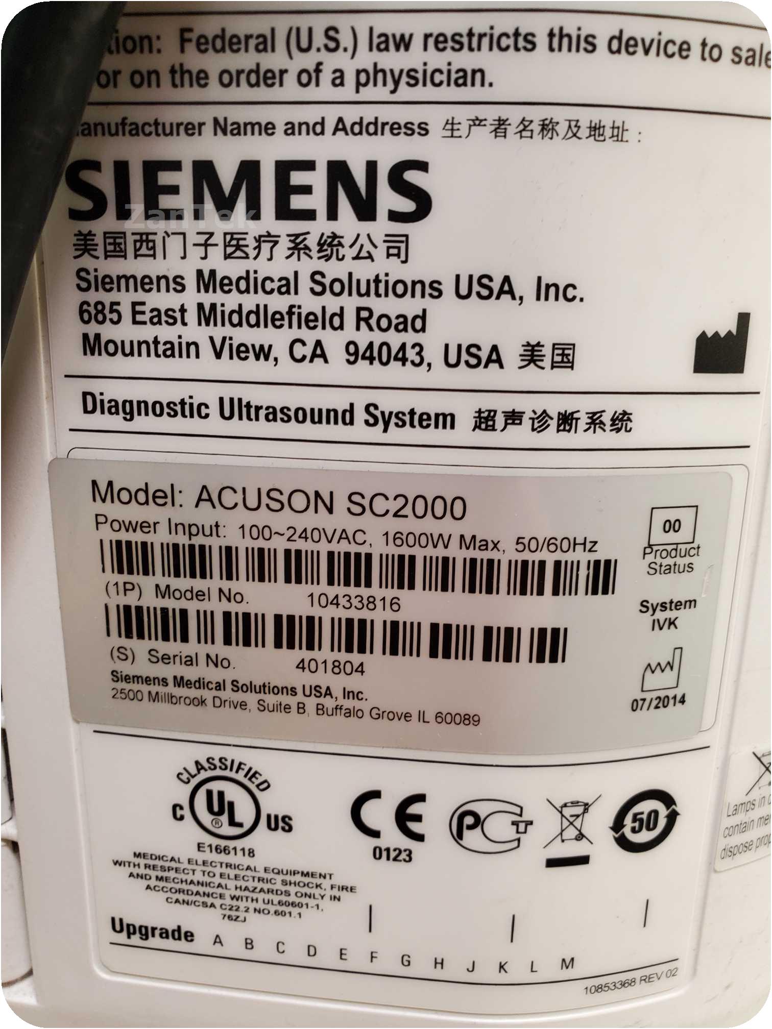 Siemens Acuson SC2000 Ultrasound Machine